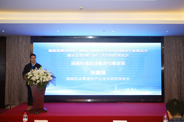 隨后當選輪值主任委員代表湖南四點零建筑產業技術研究院有限公司張國強院長發表講話并舉行了授牌儀式;湖南省建設科技與建筑節能學會丁佳偉秘書長為專委會授牌。與會領導和嘉賓為專委會主任委員單位、副主任委員單位、委員單位授牌。