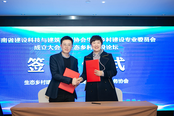 現場,生態鄉村建設專業委員會與中國國際貿易促進委員會建設行業分會、湖南省電子商務協會、律兜企業云法務三家單位簽訂合作協議,共同為生態鄉村建設行業發展貢獻力量。